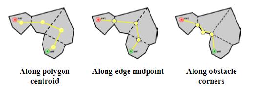 - 对于在navmesh中,g(n)的计算可以通过每两个可通行块之间的连线(即图中黄线)来作为边