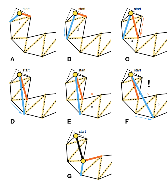 - 若挪动将使夹角变大,则回退到挪动前的状态,并交换挪动权