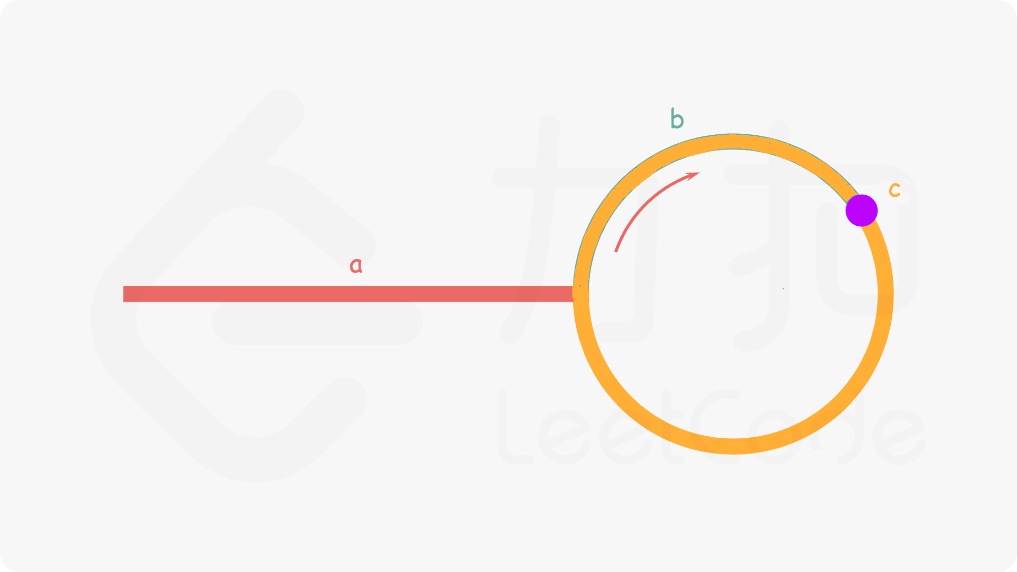 • 如图,假设非环长a,环长b,相遇时距离入环口c.